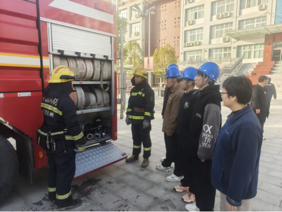 消防知识培训在实训楼前率先拉开帷幕。富民路消防站指战员重点围绕“学生身边常见的火灾隐患”“火灾逃生技巧”“灭火设备使用方法”等核心内容展开。