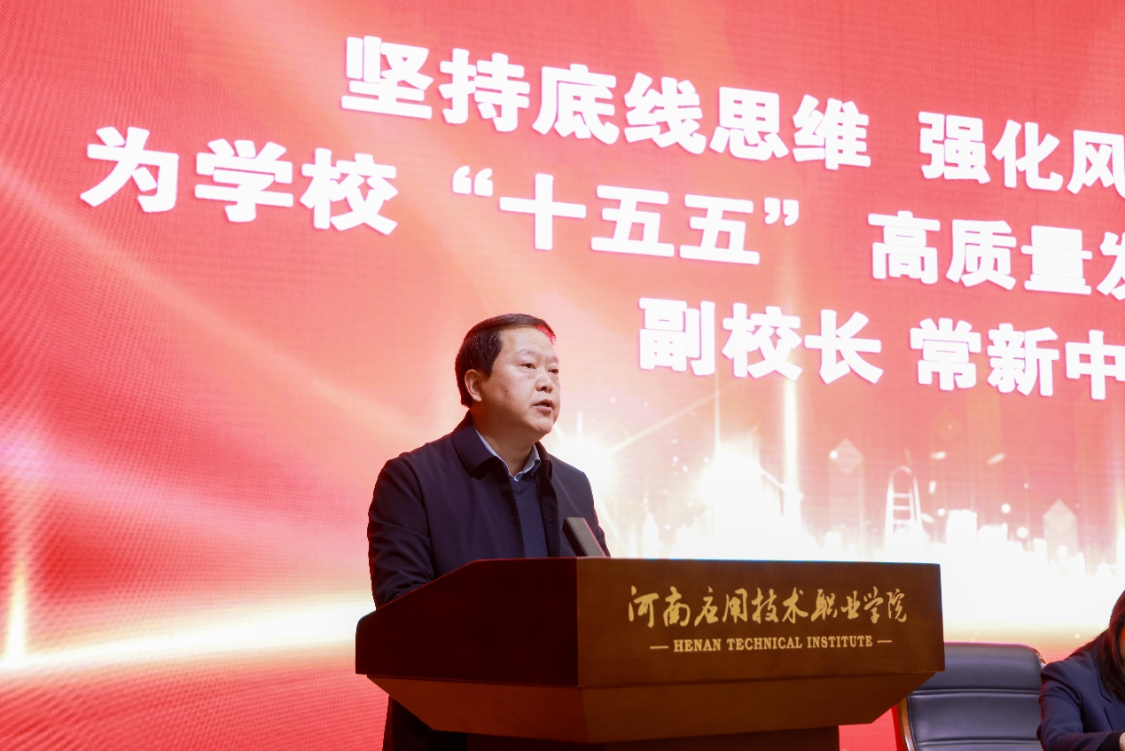 副校长常新中作安全稳定工作报告。他从责任体系、隐患排查、安全教育、智慧安防、重点领域治理等方面总结2025年工作成效,分析当前存在的问题;从政治引领、责任压实、隐患整治、智慧安防、专项治理、宣传教育、制度建设、矛盾化解八个方面部署2026年重点任务。